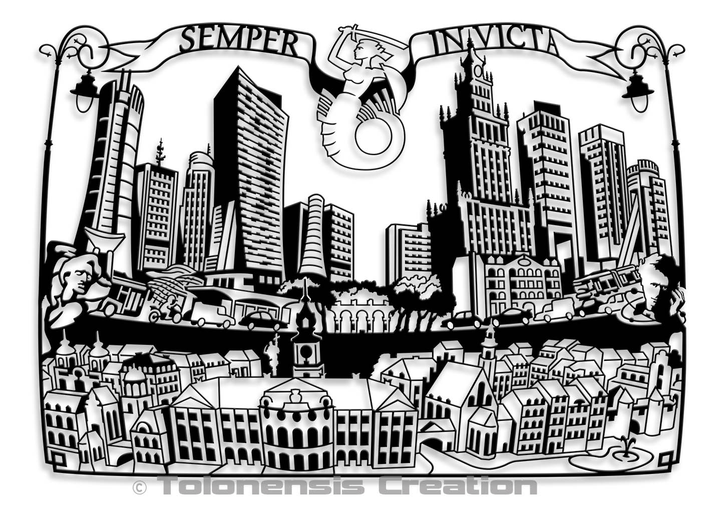 La sirène de Varsovie s’inspire du graphisme déjà développé par Tolonensis Creation à travers le serre-livres Syrenka Warszawska.