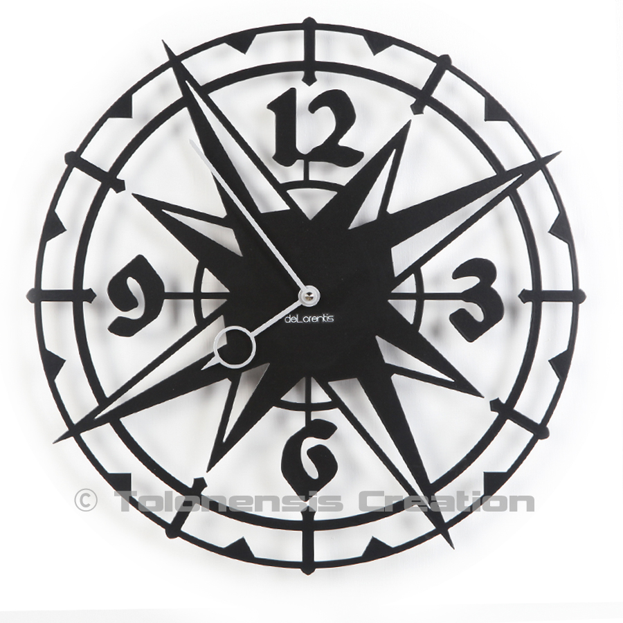 L’horloge coloniale Colombus offre une très belle composition articulée autour d’un cadran en forme de rose des vents et encadrée de chiffres romains. Ce graphisme qui rappelle les instruments de navigation et les cartes maritimes s’intègre à merveille dans de très nombreux type de décorations intérieures.